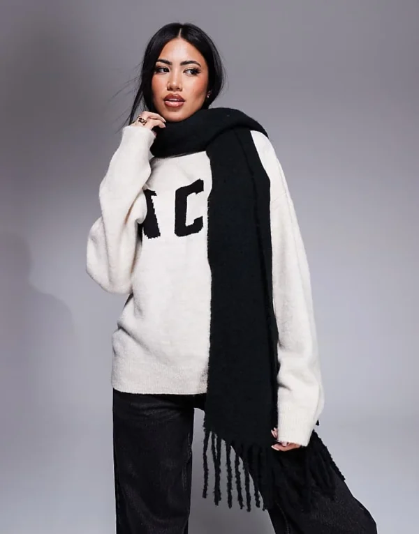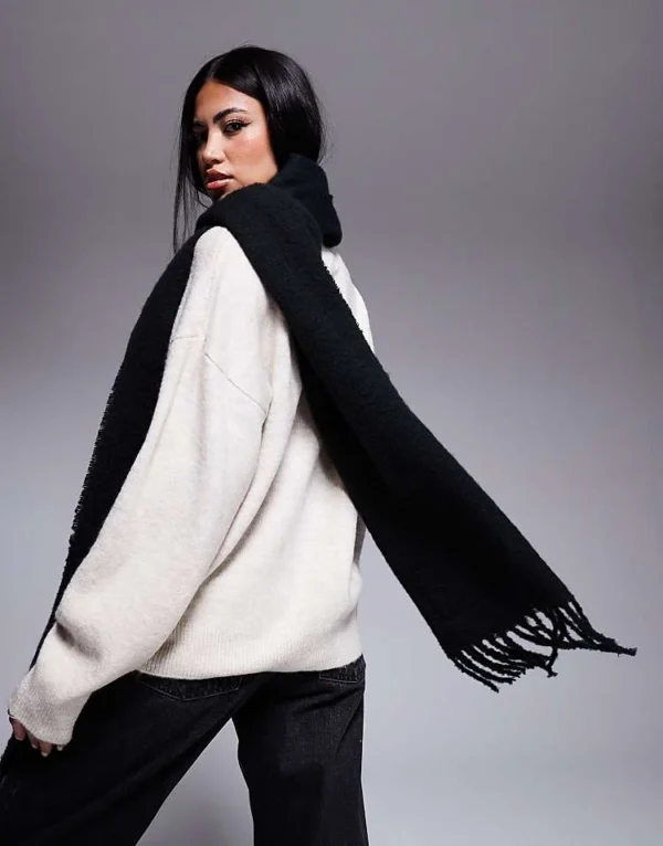 ASOS WEEKEND COLLECTIVE Weekend Collective Fluffy Blanket Scarf With Badge In Black For Women