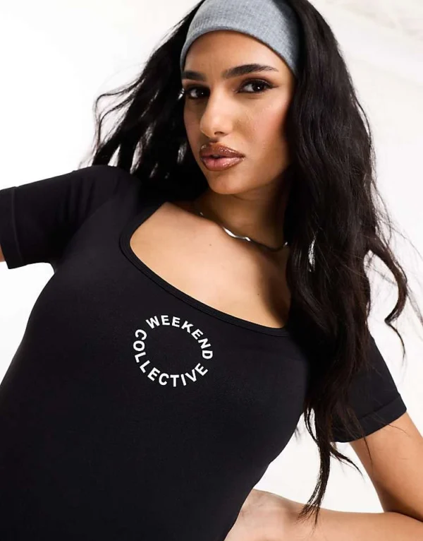 ASOS Weekend Collective Seamless Romper With Logo In Black For Women