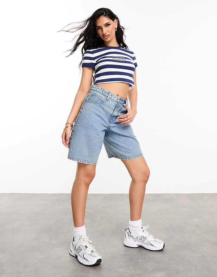 ASOS WEEKEND COLLECTIVE ASOS DESIGN Weekend Collective Longline Denim Shorts In Acid Blue Wash For Women