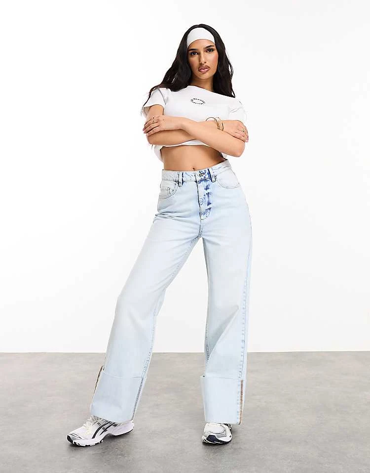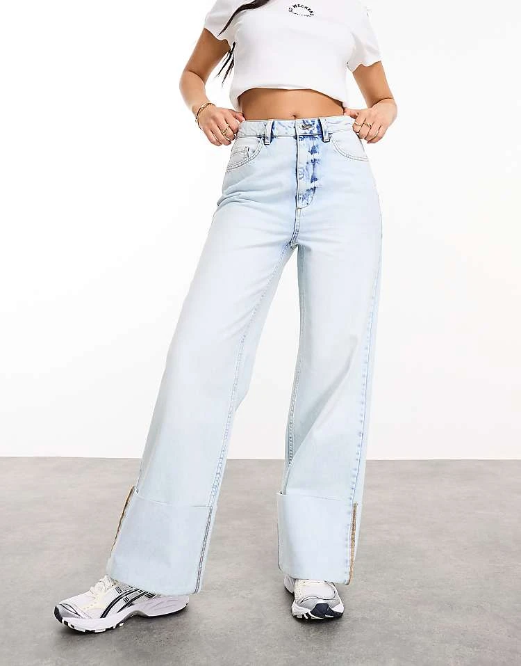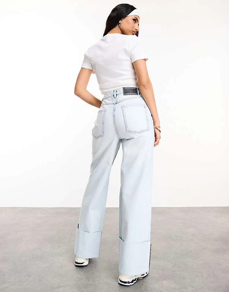 ASOS WEEKEND COLLECTIVE ASOS DESIGN Weekend Collective Mom Jean With Turn Up Detail In Light Wash For Women