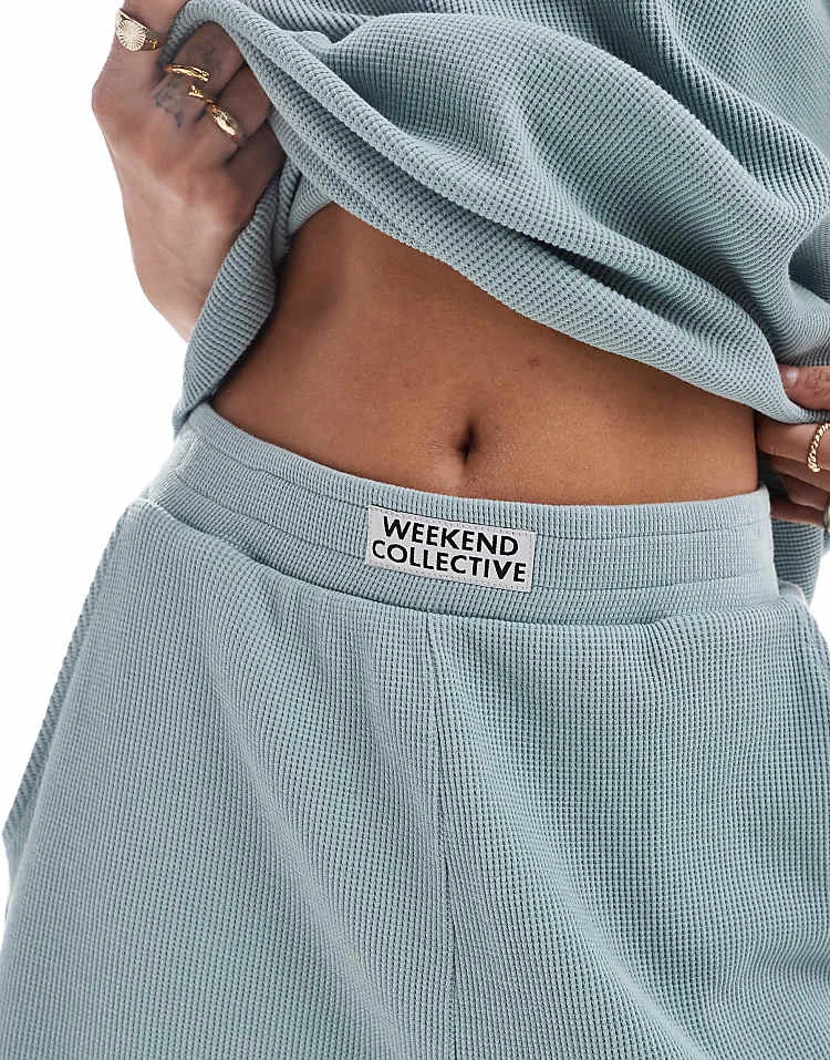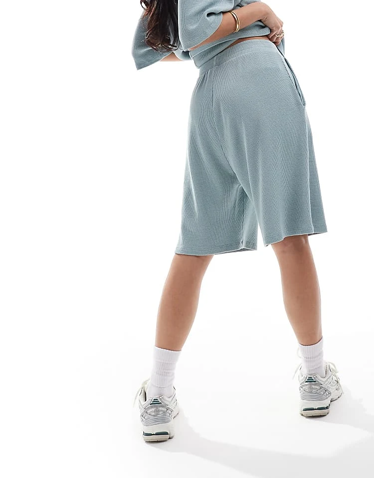 ASOS WEEKEND COLLECTIVE ASOS DESIGN Weekend Collective Waffle Long Short In Blue Co-ord For Women