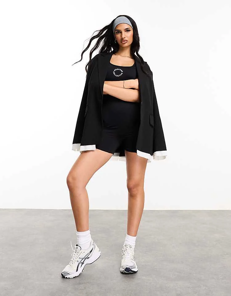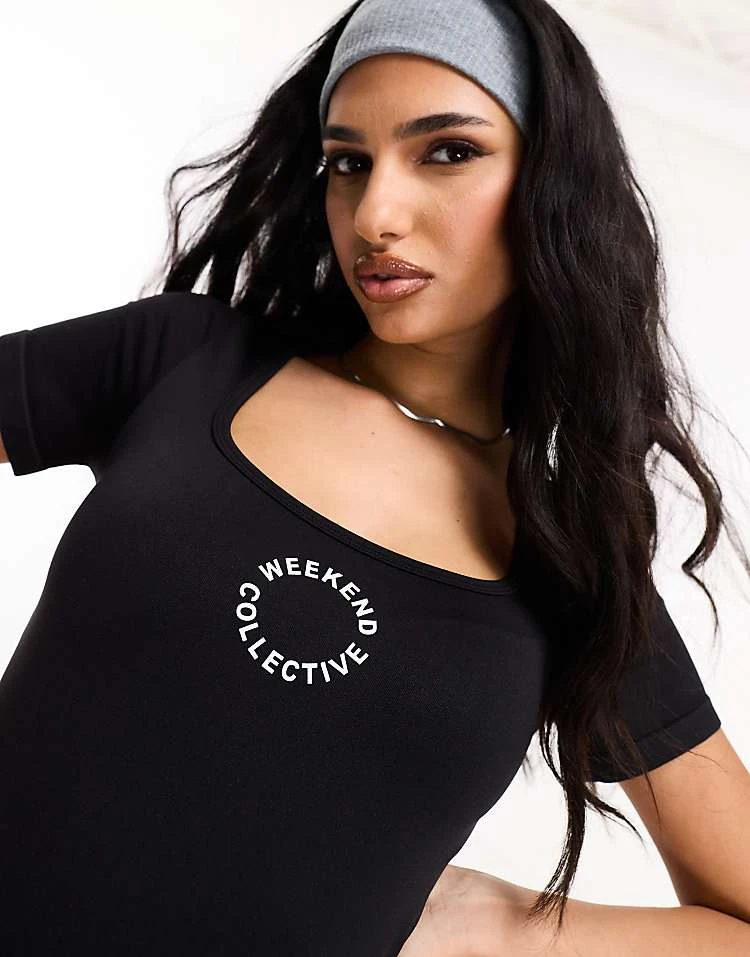 ASOS Weekend Collective Seamless Romper With Logo In Black For Women