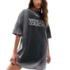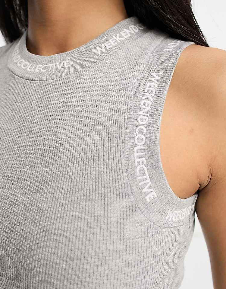 ASOS Weekend Collective Tank Dress With Logo Rib In Grey For Women Grey Marl