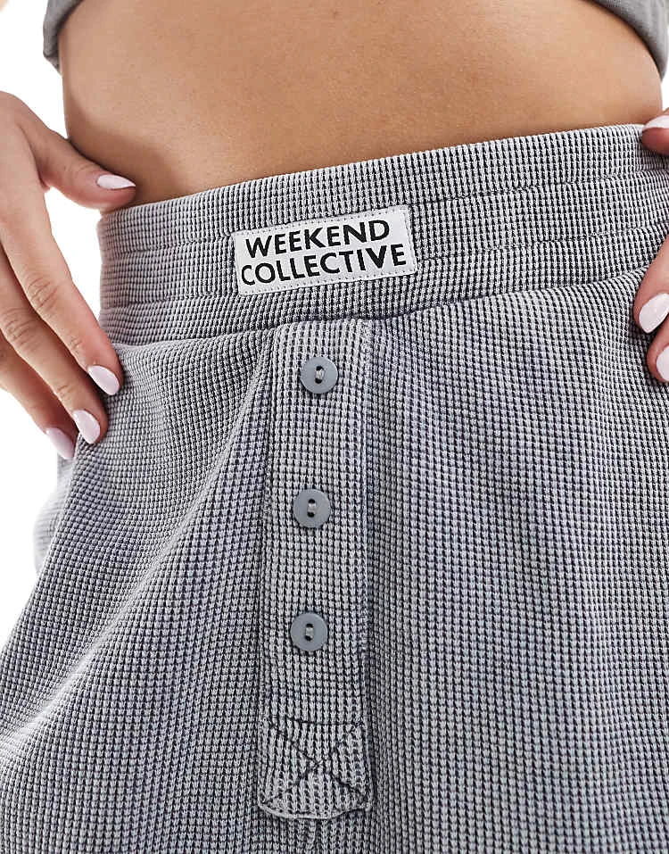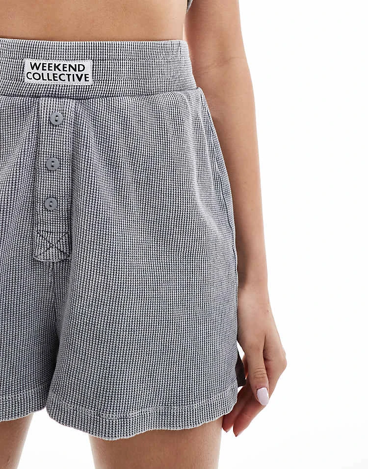 ASOS Weekend Collective Waffle Boxer Shorts In Acid Wash Grey For Women Acid Grey