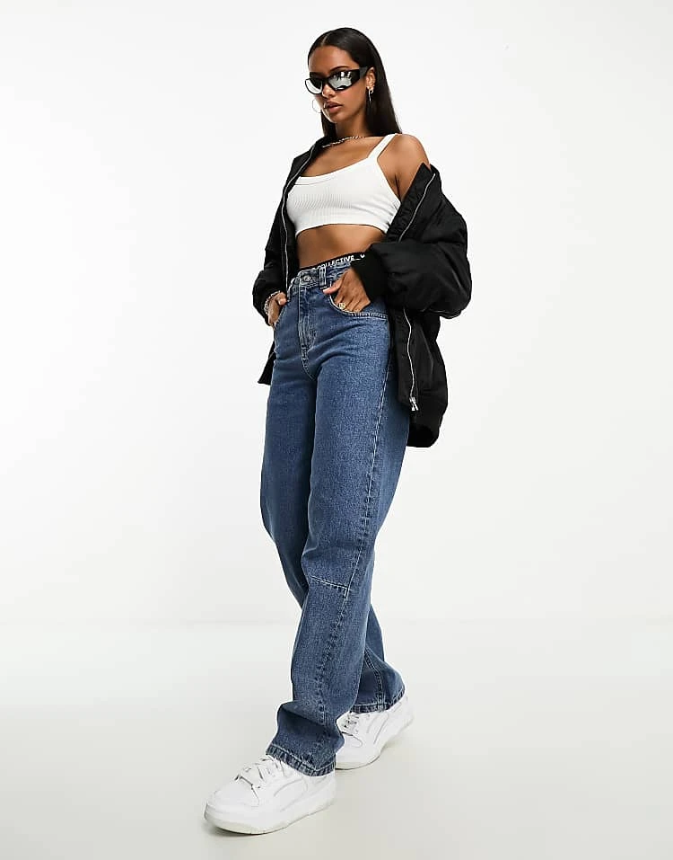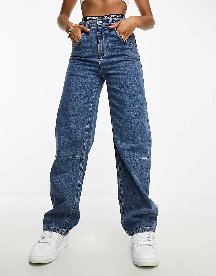 ASOS WEEKEND COLLECTIVE Weekend Collective Baggy Fit Jeans In Mid Blue Wash For Women