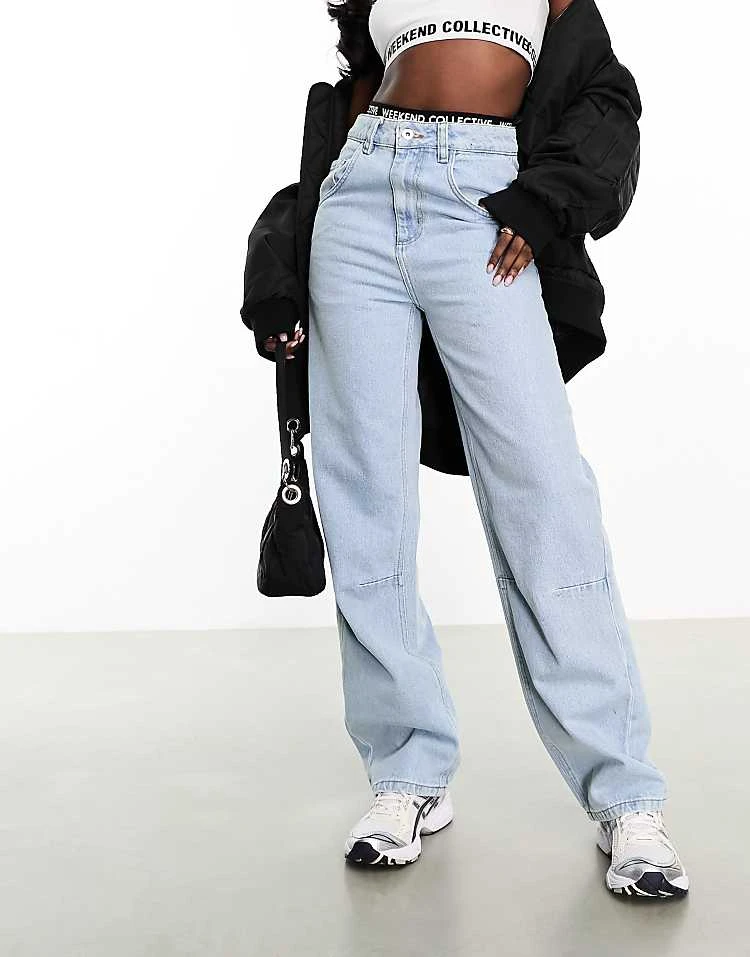 ASOS WEEKEND COLLECTIVE Weekend Collective Baggy Fit Jeans In Vintage Light Wash Blue For Women