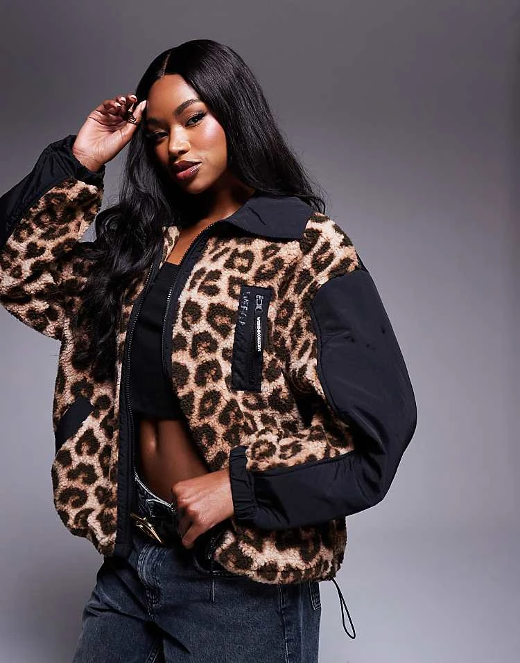 ASOS WEEKEND COLLECTIVE Weekend Collective Borg Nylon Zip Through In Black Leopard Mix For Women
