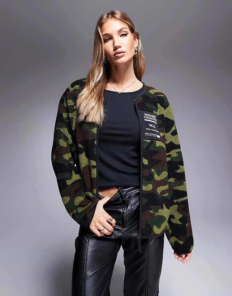 ASOS WEEKEND COLLECTIVE Weekend Collective Camo Borg Zip Through For Women