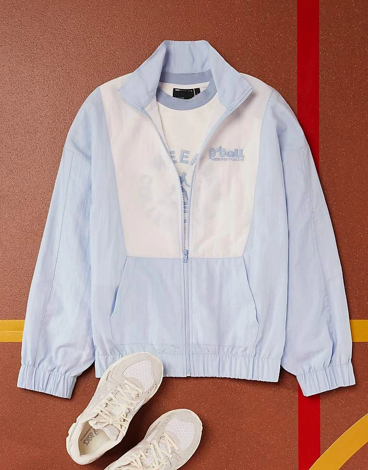 ASOS WEEKEND COLLECTIVE Weekend Collective Co-ord Oversized Nylon Jacket With Graphic In Pastel Blue For Women
