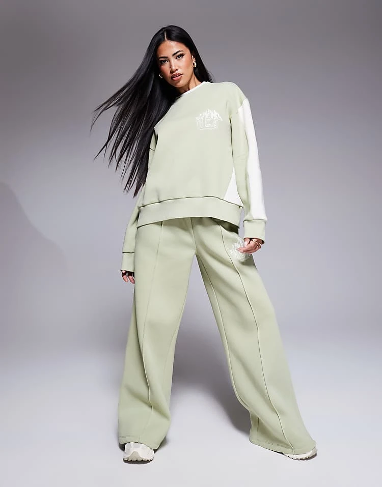 ASOS WEEKEND COLLECTIVE Weekend Collective Co-ord Ski Sweatshirt With Seam Details In Sage Green – MGREEN