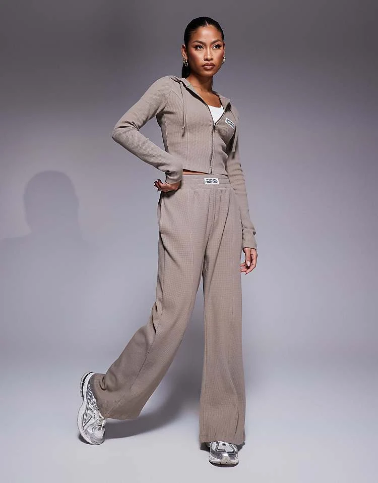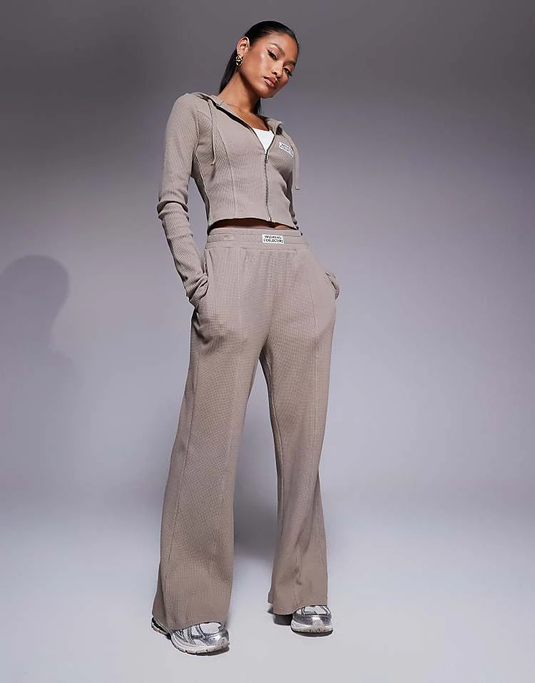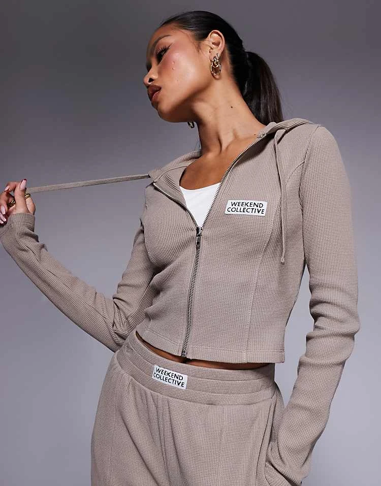 ASOS WEEKEND COLLECTIVE Weekend Collective Co-ord Waffle Zip Through Hoodie And Jogger In Neutral