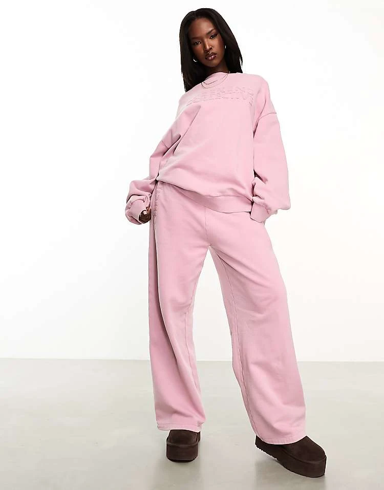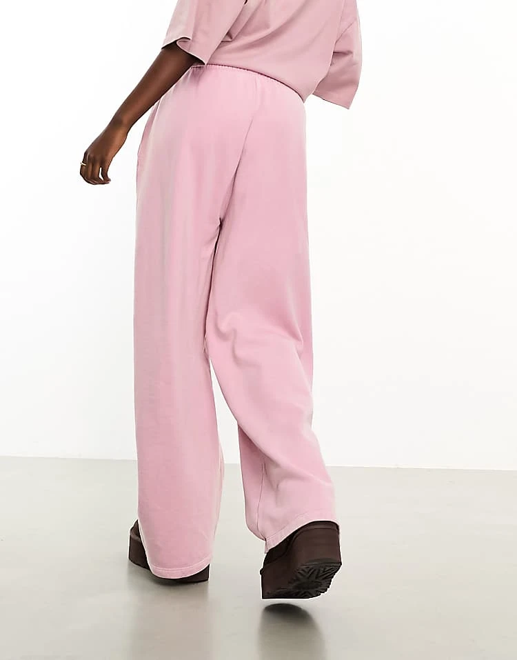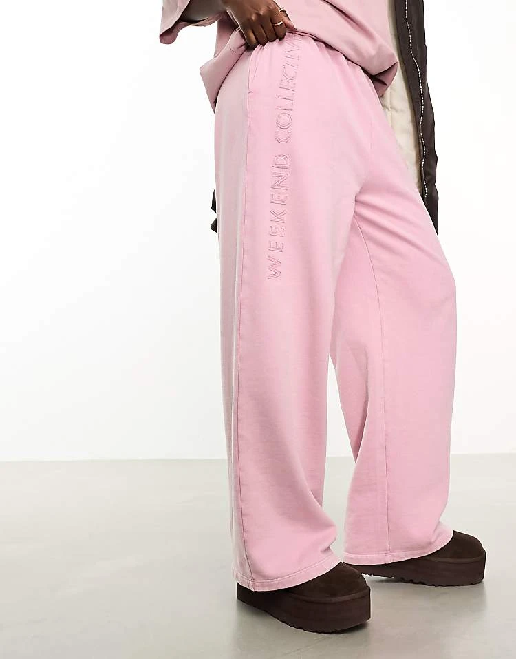 ASOS WEEKEND COLLECTIVE Weekend Collective Co-ord Wide Leg Jogger With Logo In Washed Pink For Women