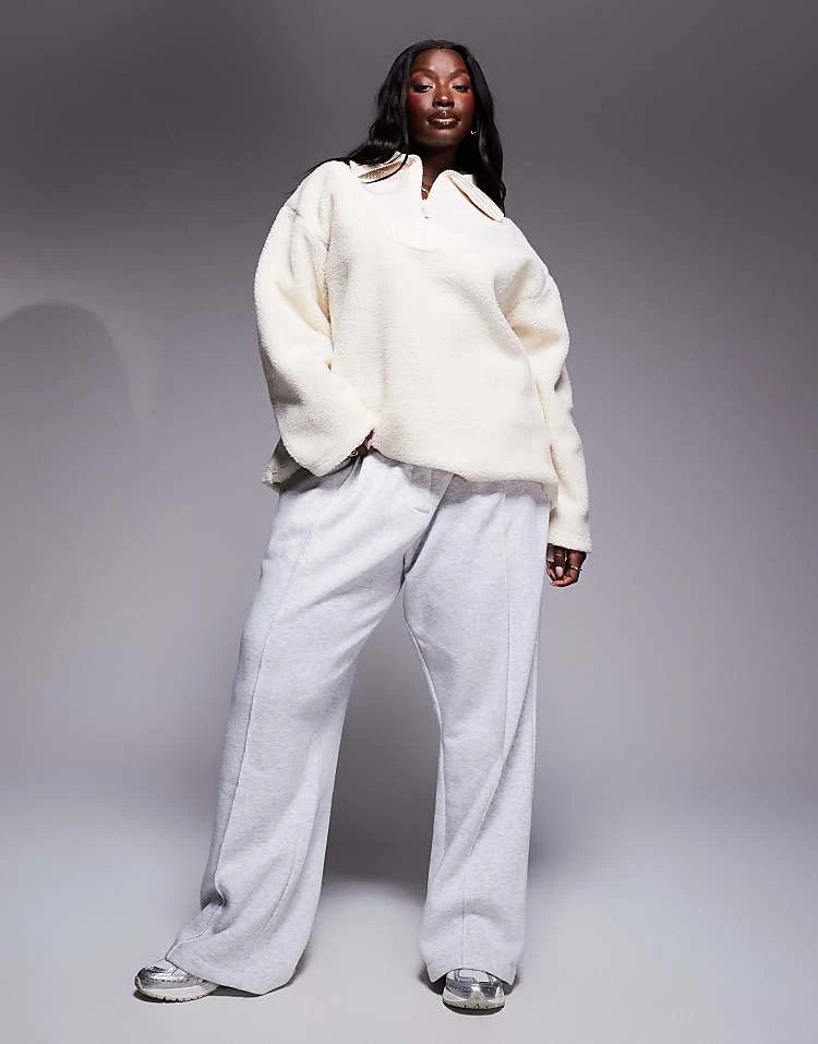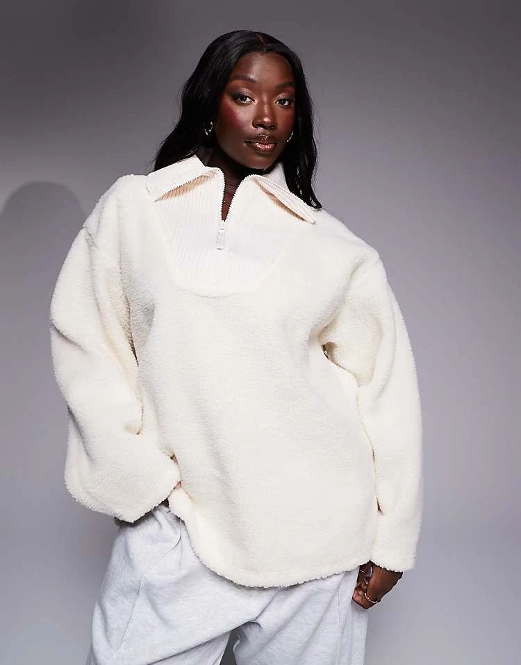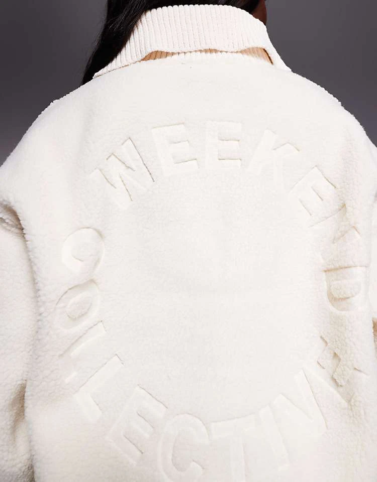 ASOS WEEKEND COLLECTIVE Weekend Collective Curve Rib Neck Zip Through Borg With Embossed Back In Cream For Women