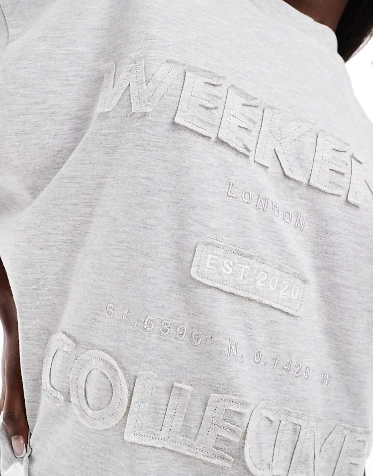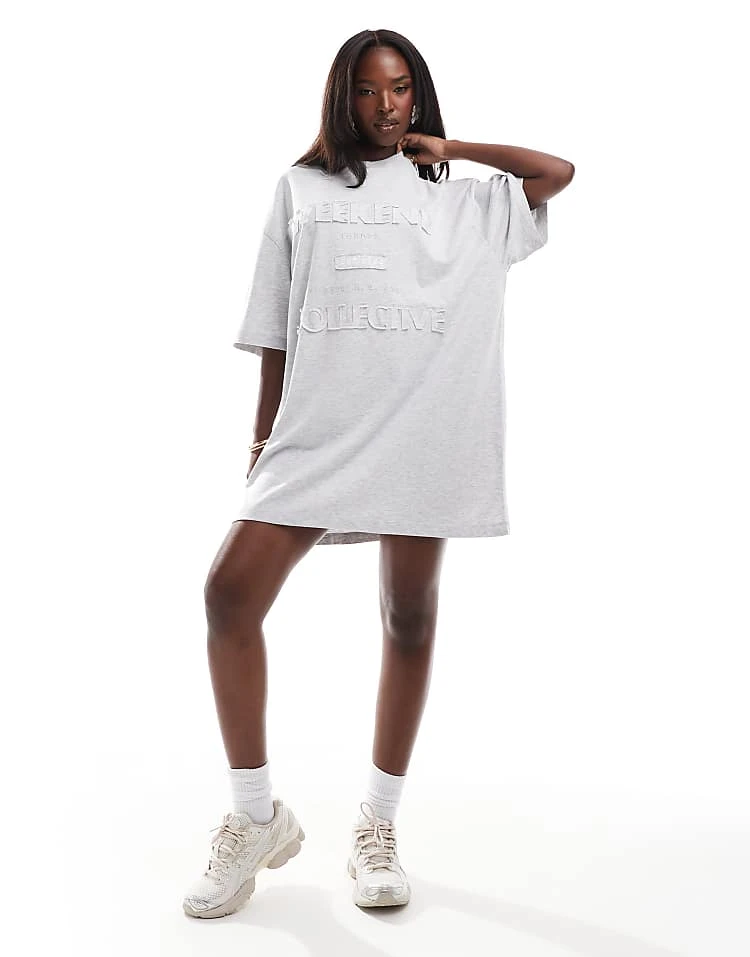ASOS WEEKEND COLLECTIVE Weekend Collective Distressed Logo Oversized T-shirt Dress In Ice Marl For Women