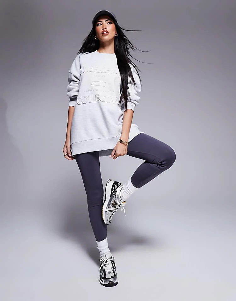 ASOS WEEKEND COLLECTIVE Weekend Collective Distressed Logo Sweatshirt In Grey Marl For Women