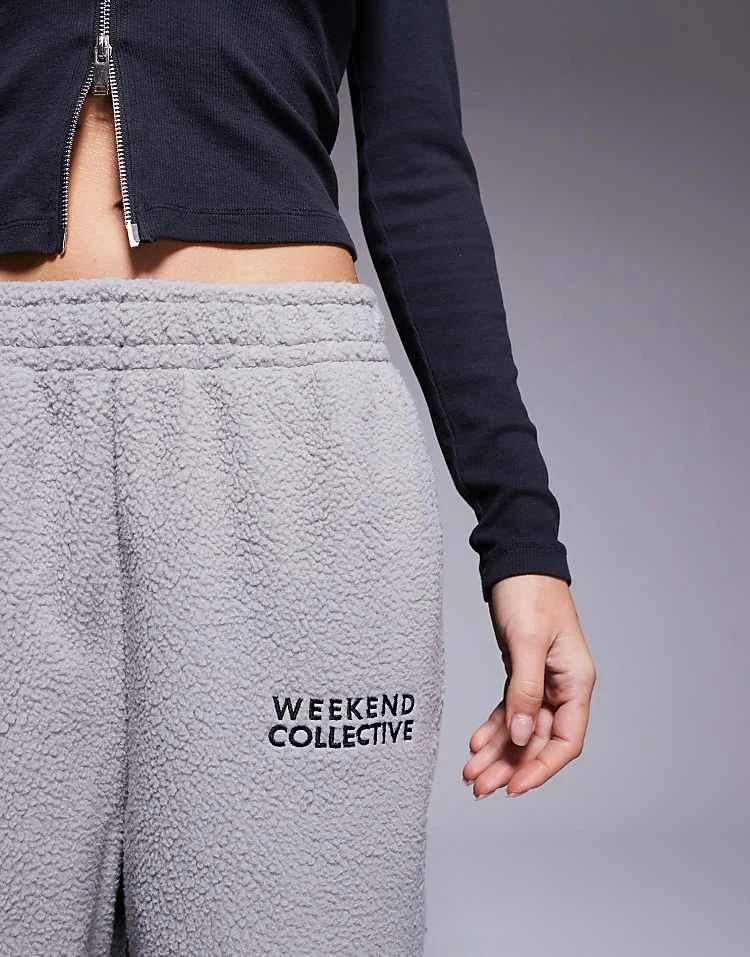 ASOS WEEKEND COLLECTIVE Weekend Collective Fleece Straight Leg Jogger In Grey For Women