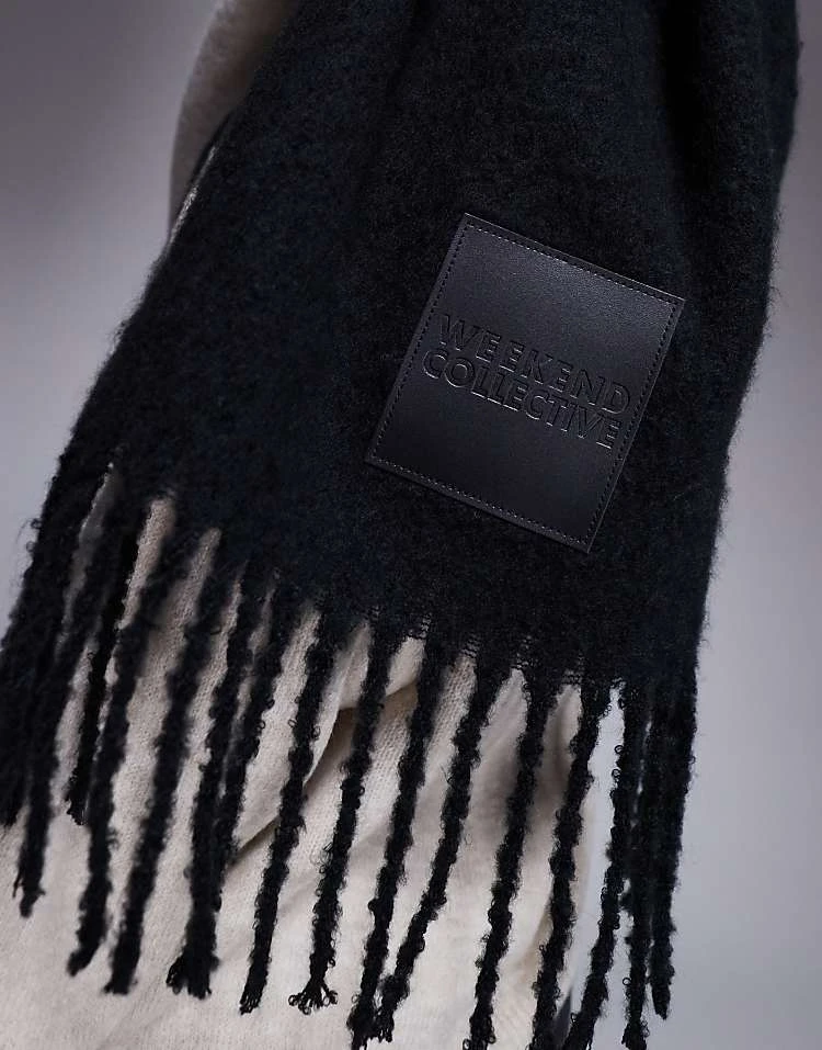 ASOS WEEKEND COLLECTIVE Weekend Collective Fluffy Blanket Scarf With Badge In Black For Women