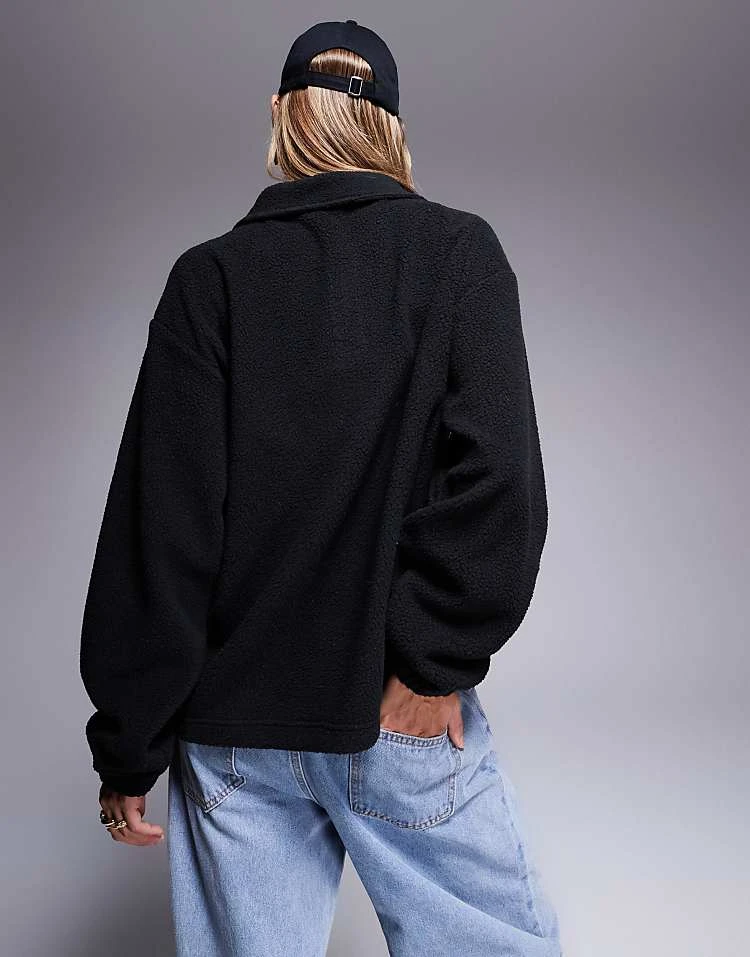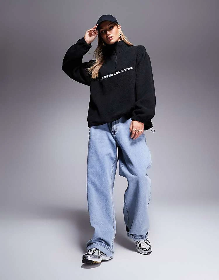 ASOS WEEKEND COLLECTIVE Weekend Collective Half Zip Borg Fleece With Logo In Black For Women