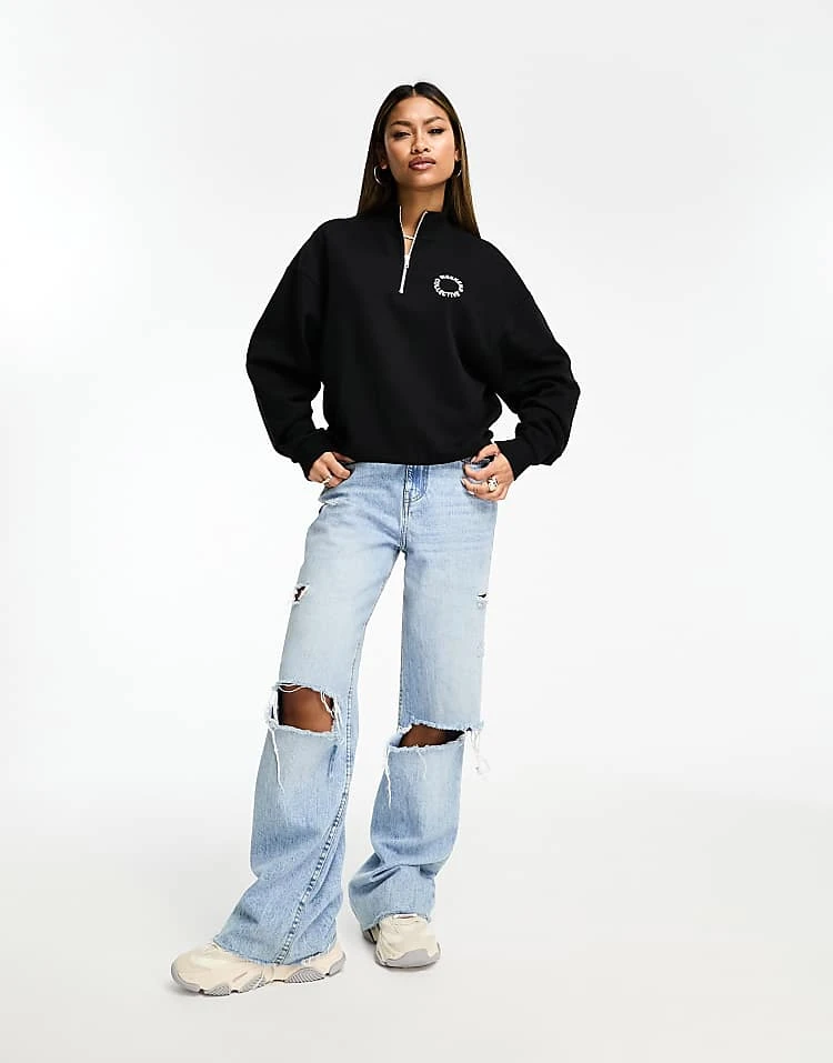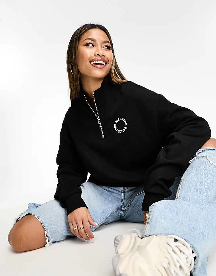 ASOS WEEKEND COLLECTIVE Weekend Collective Half Zip Sweat With Circle Logo In Black For Women