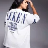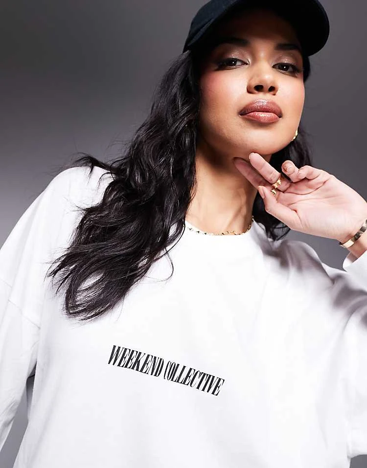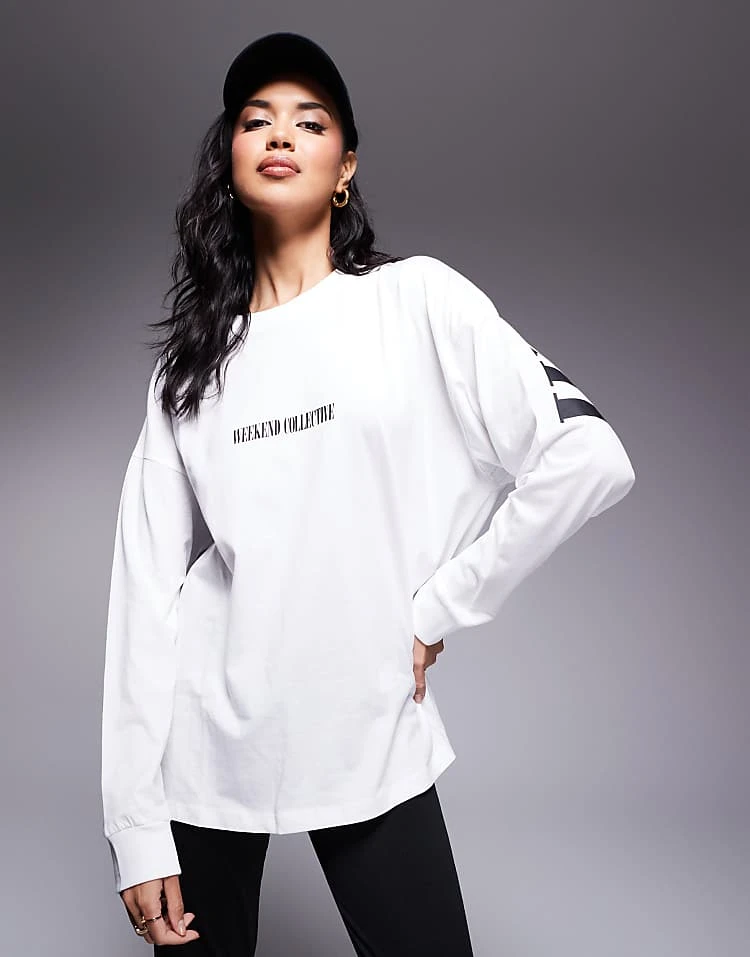 ASOS WEEKEND COLLECTIVE Weekend Collective Icon Oversized Long Sleeve T-shirt With Stacked Back Logo In White For Women