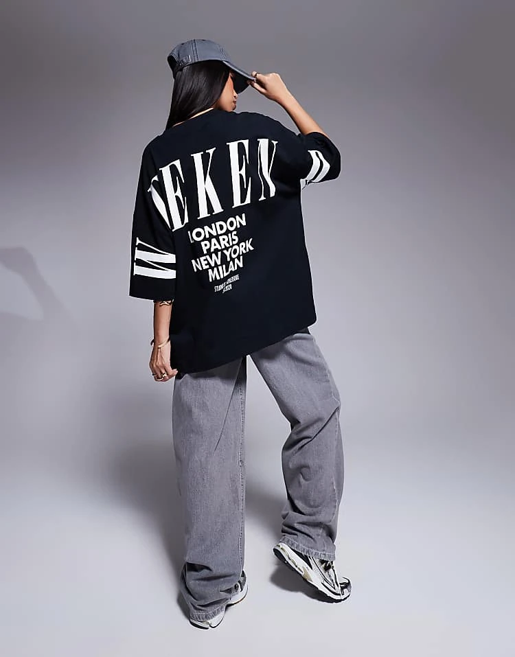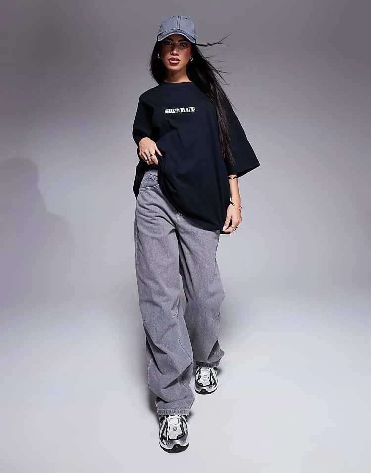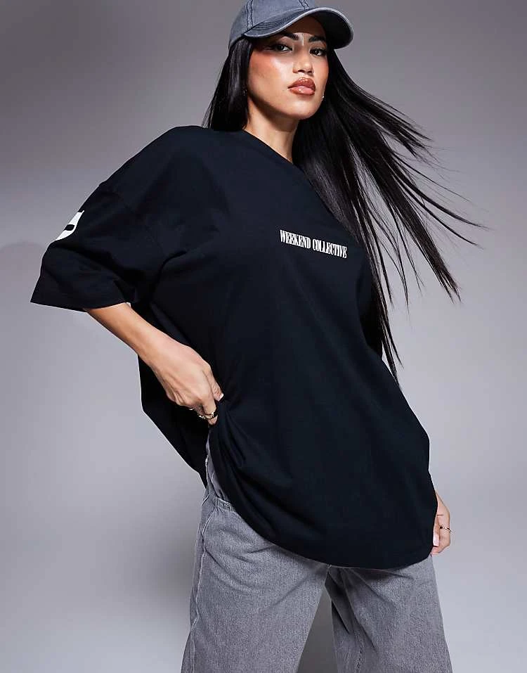 ASOS WEEKEND COLLECTIVE Weekend Collective Icon Oversized T-shirt With Stacked Back Logo In Black For Women
