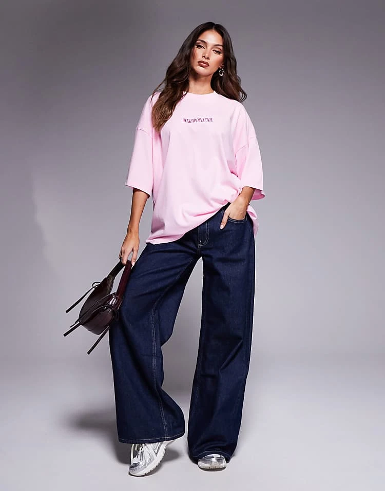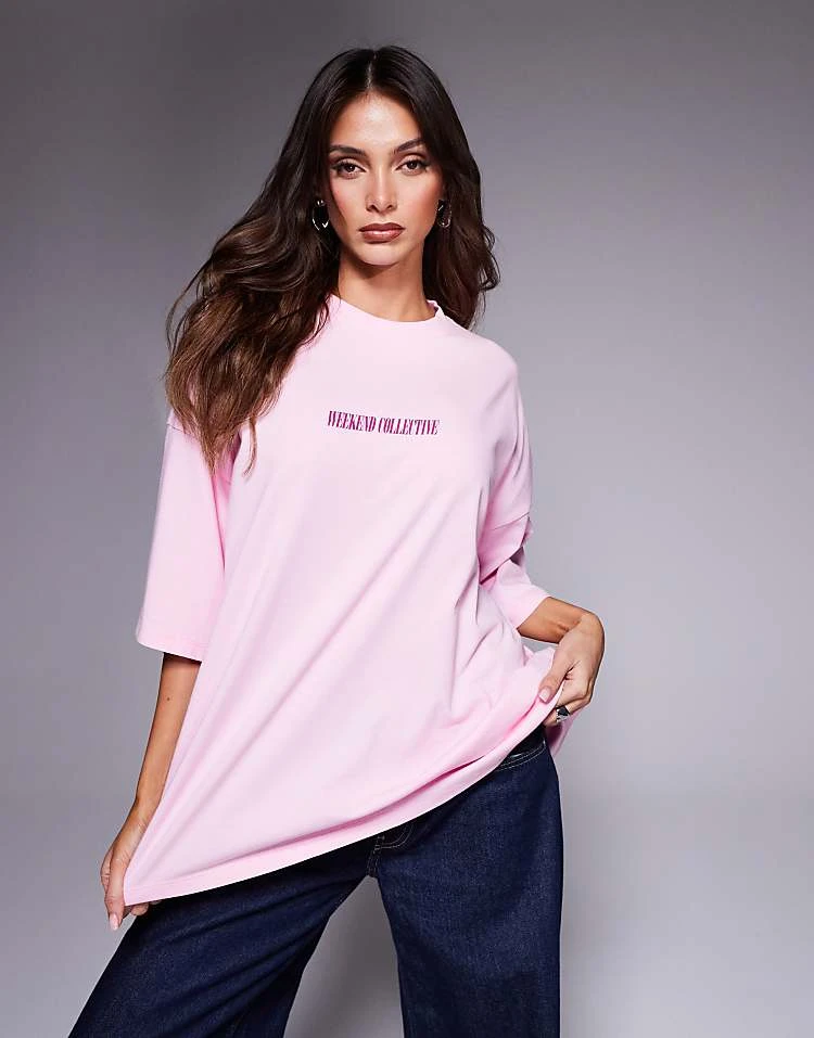 ASOS WEEKEND COLLECTIVE Weekend Collective Icon Oversized T-shirt With Stacked Back Logo In Light Pink And Purple For Women
