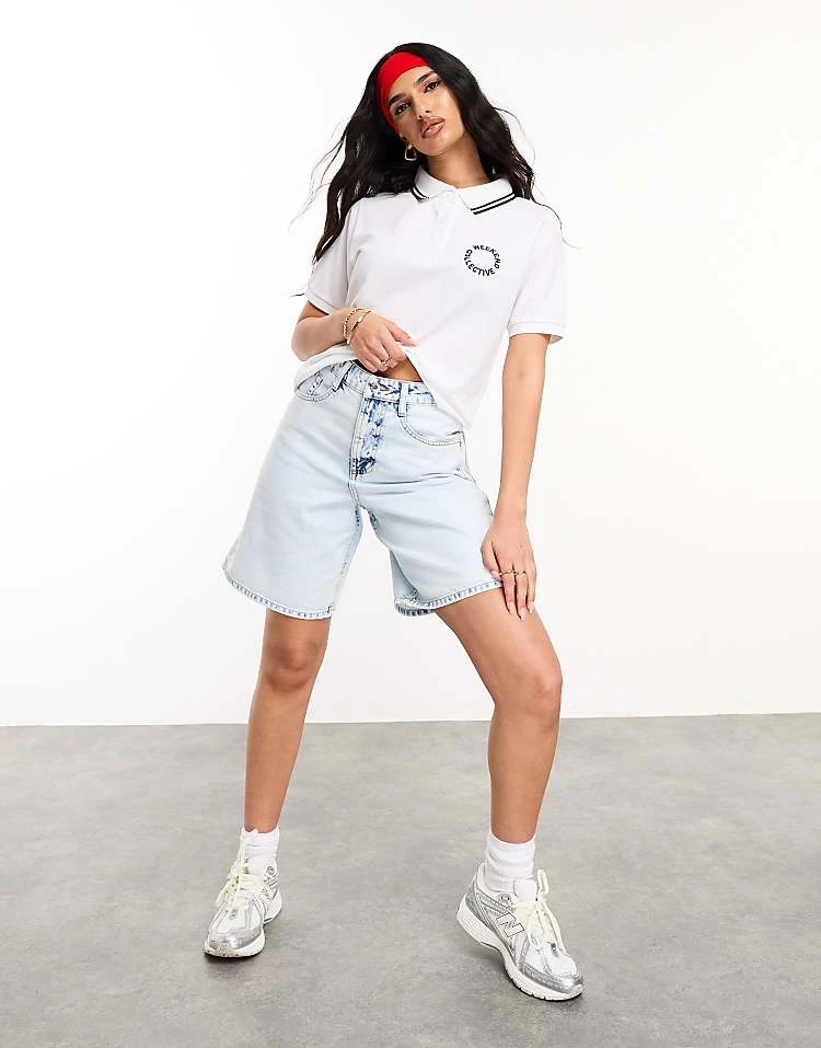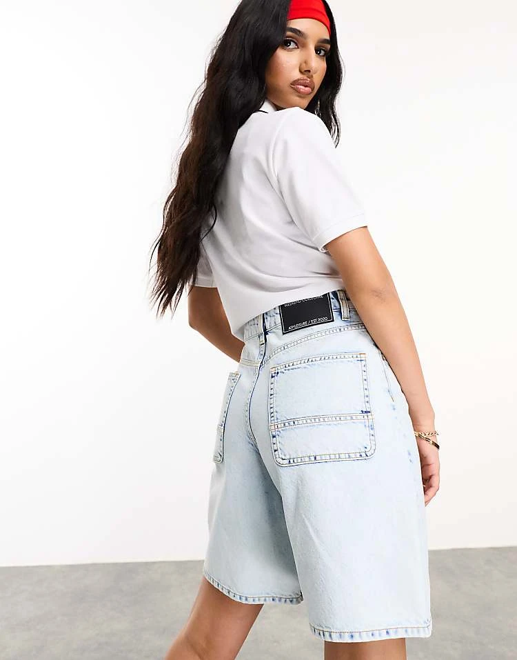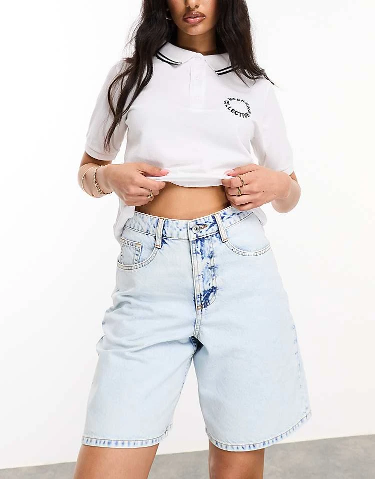 ASOS WEEKEND COLLECTIVE Weekend Collective Longline Denim Shorts In Light Blue Wash For Women