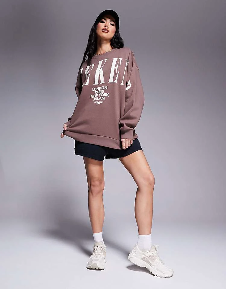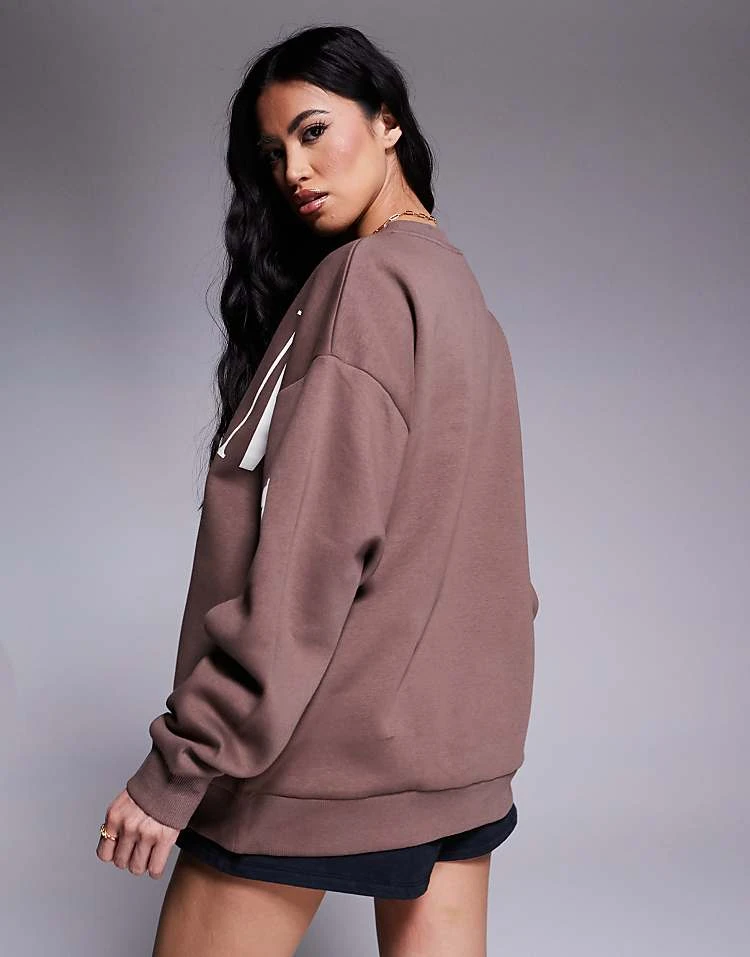ASOS Weekend Collective Weekend Collective Oversized Sweat With Stacked Logo In Chocolate For Women Brown