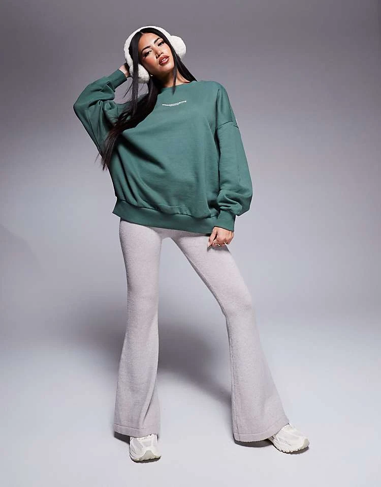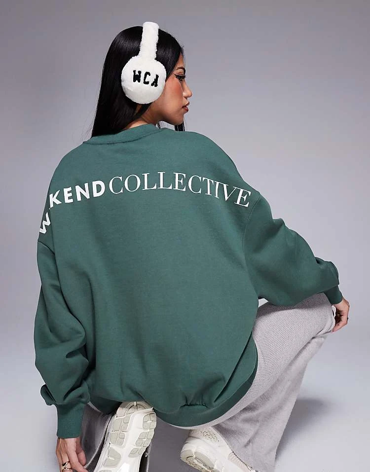 ASOS WEEKEND COLLECTIVE Weekend Collective Oversized Sweatshirt With Large Back Logo In Khaki For Women