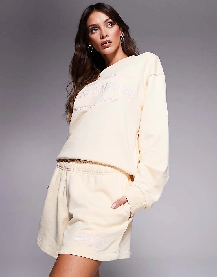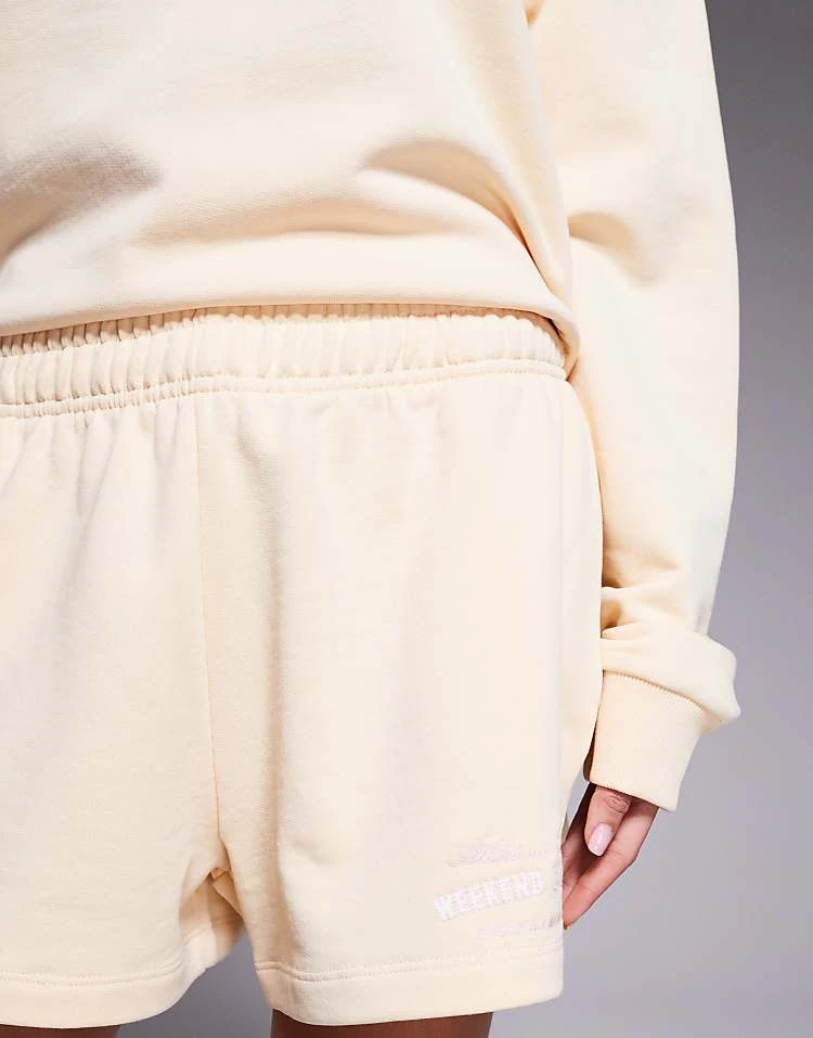 ASOS WEEKEND COLLECTIVE Weekend Collective Short Co-ord With Embroidered Logo In Buttermilk For Women