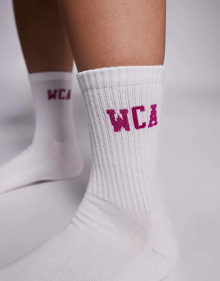 ASOS WEEKEND COLLECTIVE Weekend Collective Sock With WCA Graphic Deisgn In Pink For Women White