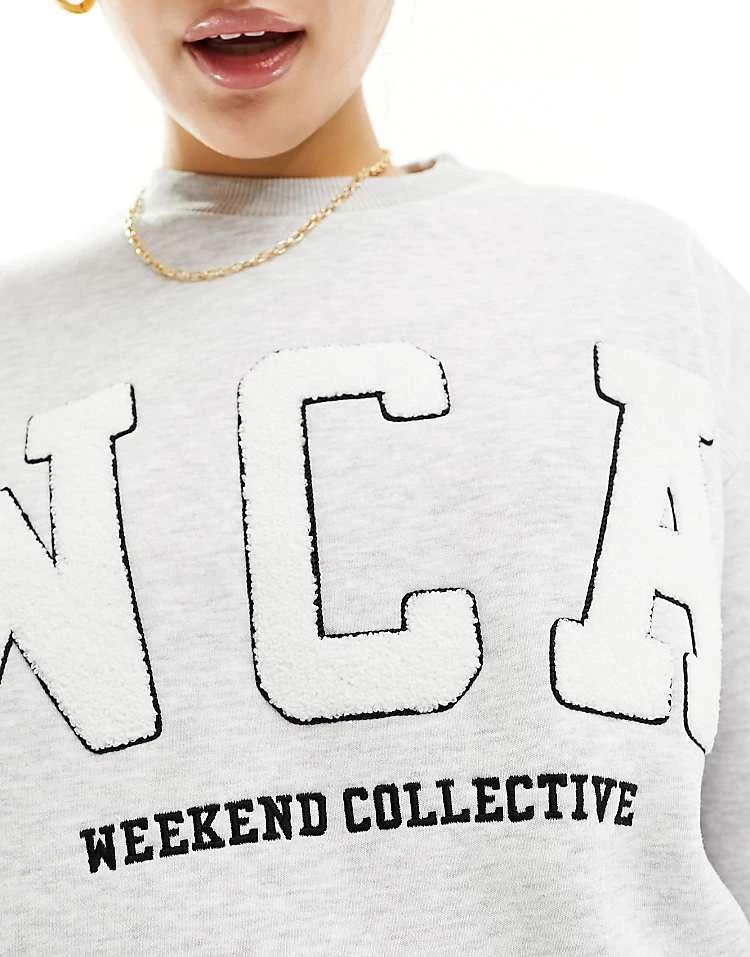 ASOS WEEKEND COLLECTIVE Weekend Collective Sweat With Varsity Logo In Grey Marl For Women