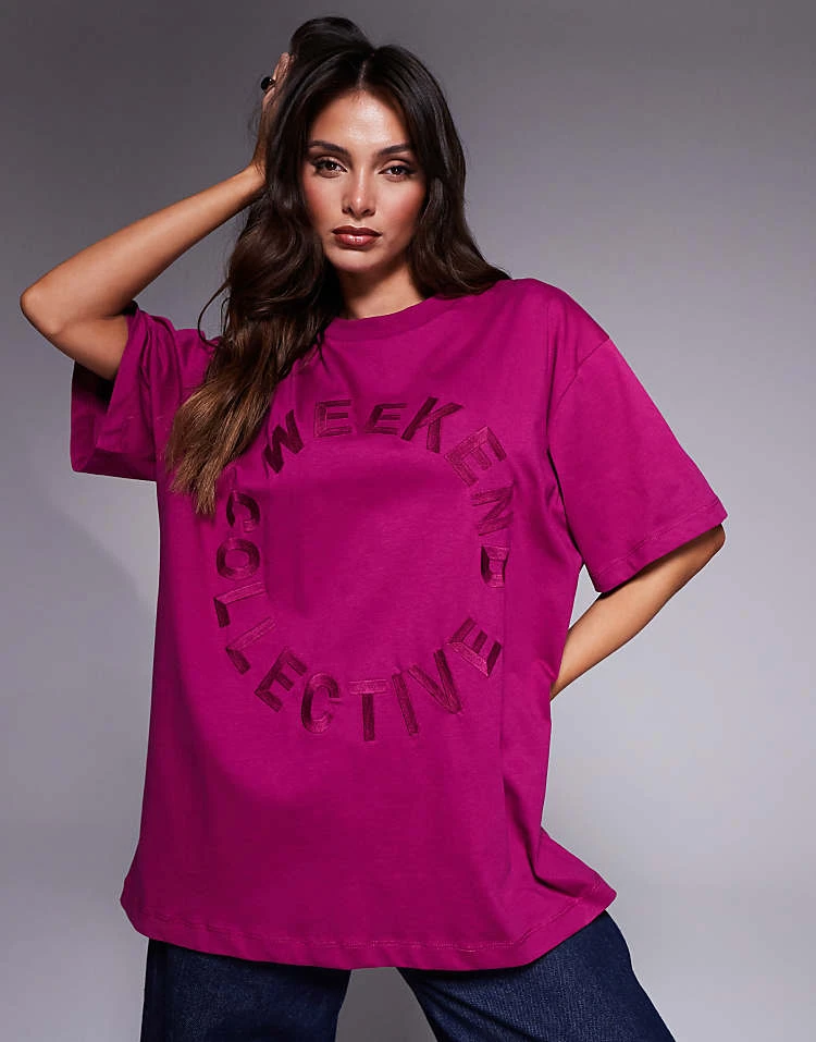ASOS WEEKEND COLLECTIVE Weekend Collective Tshirt With Circle Graphic In Plum For Women Purple