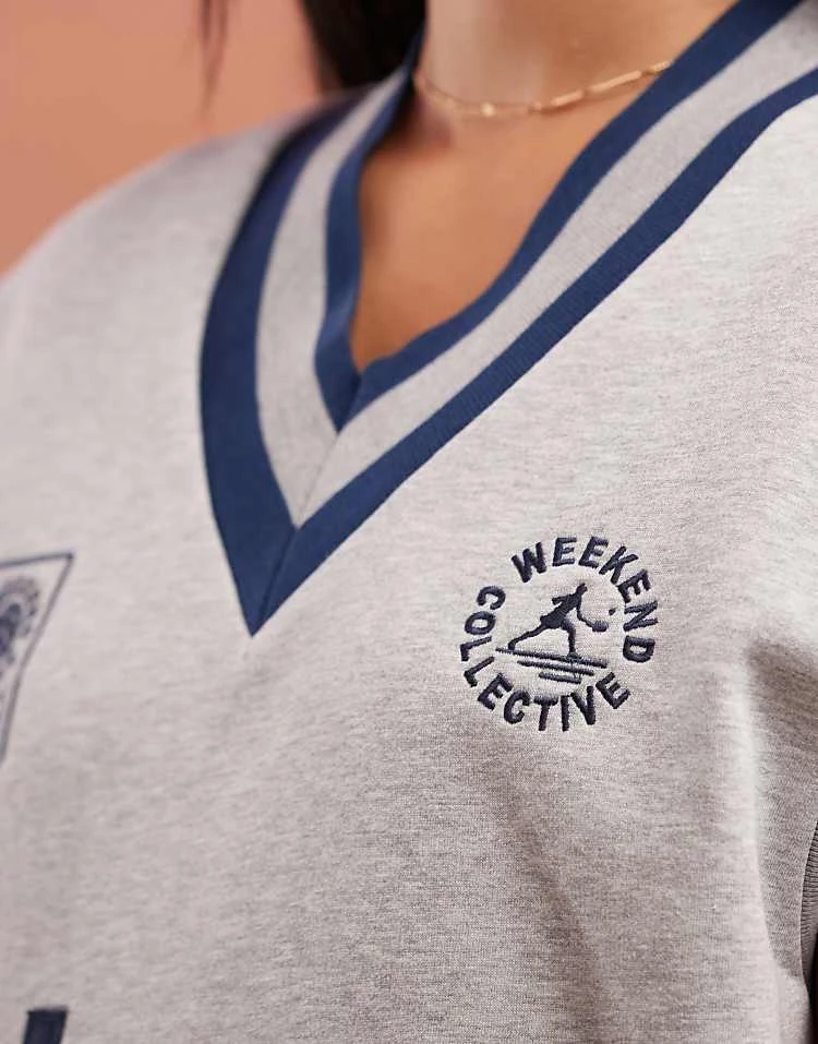 ASOS WEEKEND COLLECTIVE Weekend Collective V Neck Sleeveless Heavyweight Jersey Sweatshirt With Graphic In Grey Marl For Women
