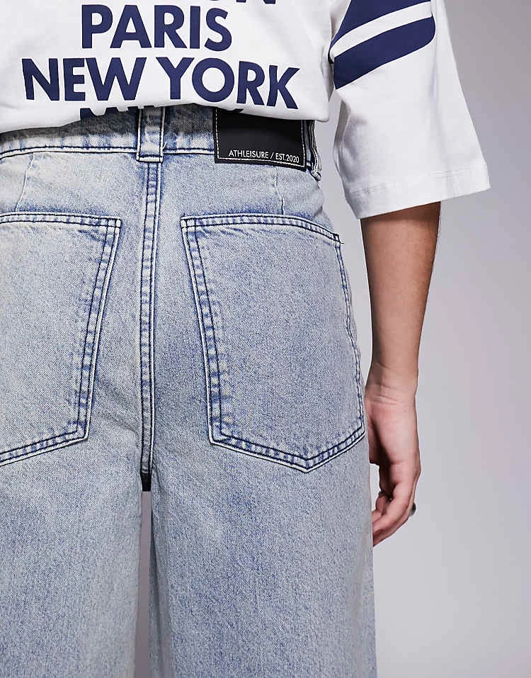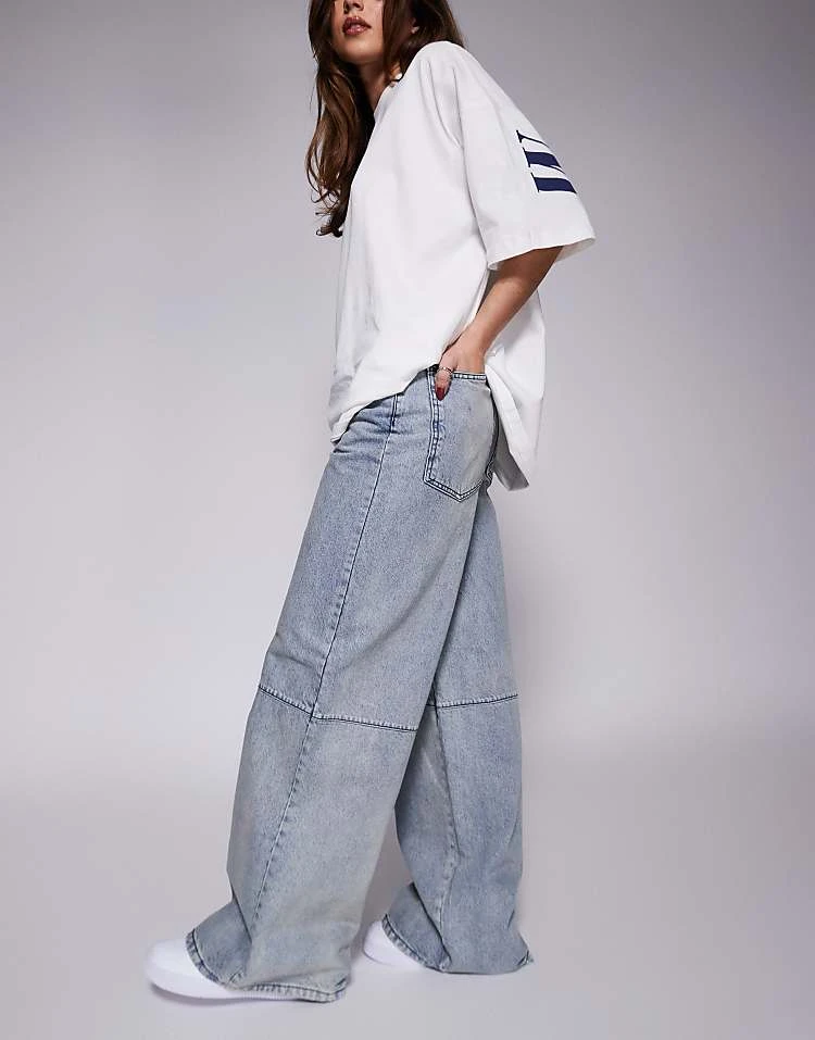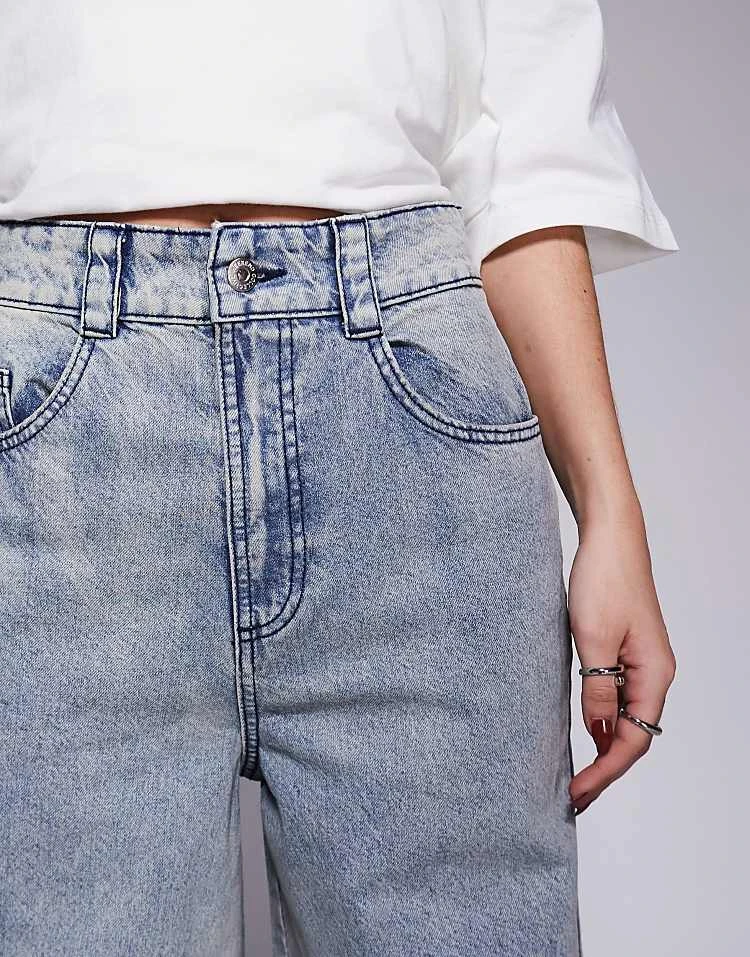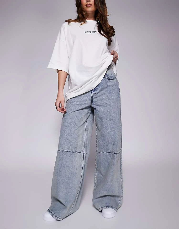 ASOS WEEKEND COLLECTIVE Weekend Collective Wide Leg Jean With Horizonal Seam In Mid Blue For Women Washed Blue