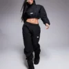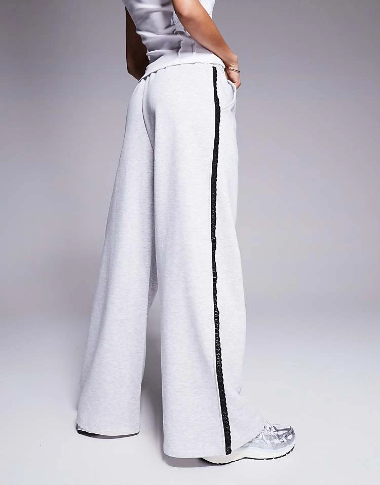 ASOS WEEKEND COLLECTIVE Weekend Collective Wide Leg Jogger With Lace Trim Detail In Grey Marl And Black For Women