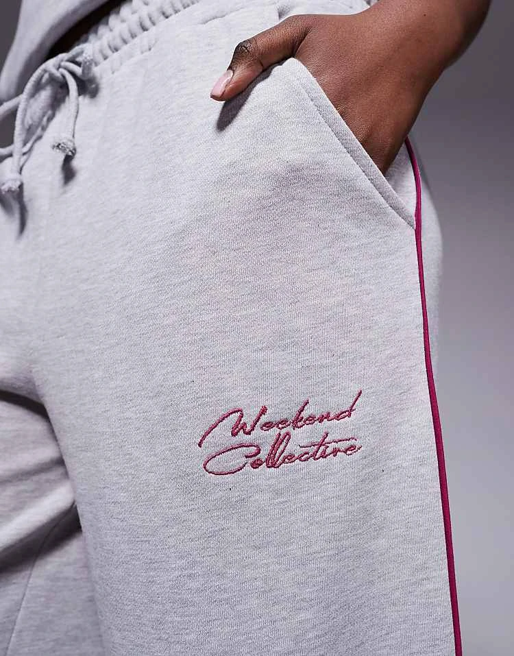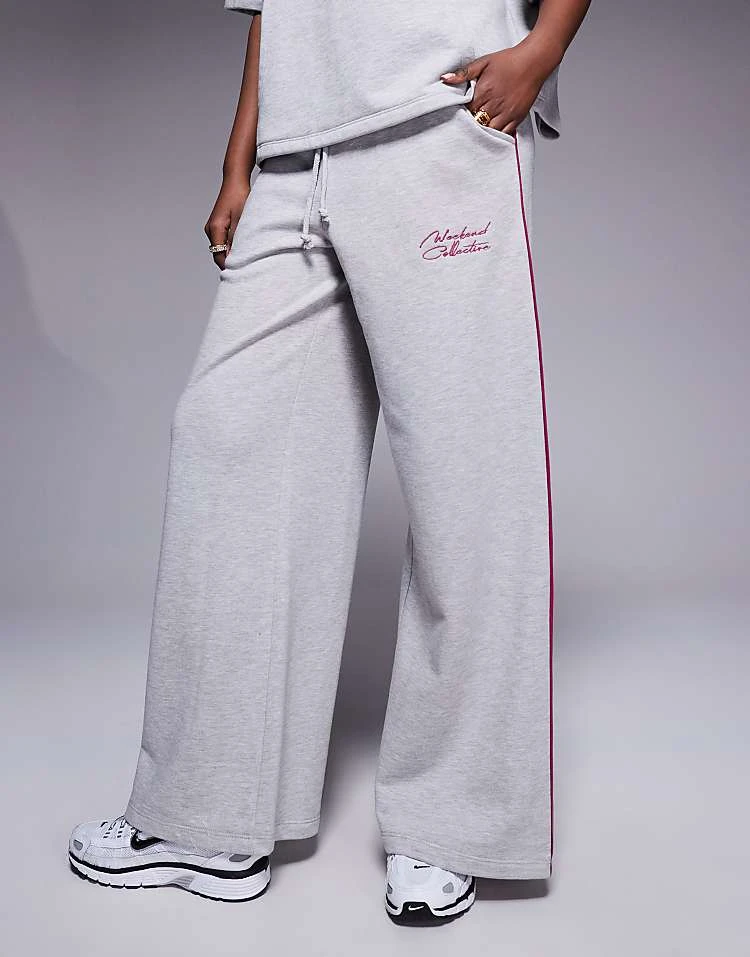 ASOS WEEKEND COLLECTIVE Weekend Collective Wide Leg Jogger With Piping Detail In Grey Marl And Plum For Women