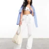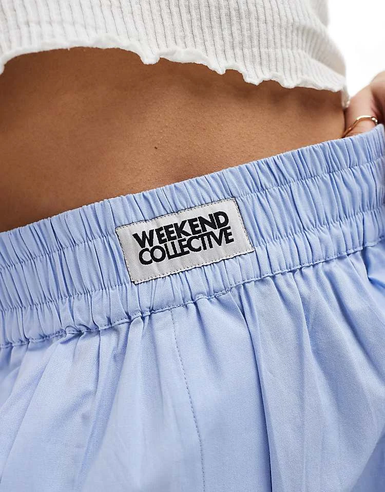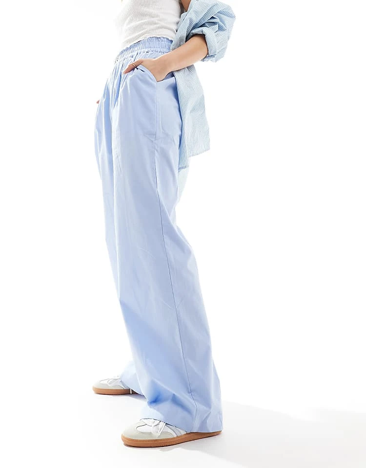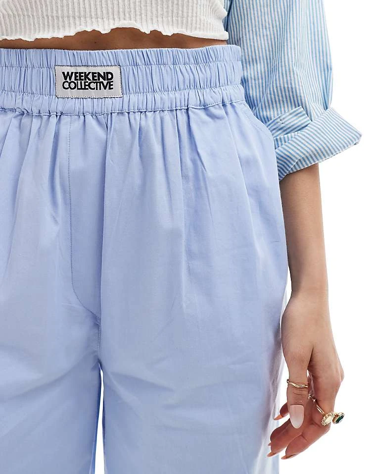 ASOS WEEKEND COLLECTIVE Weekend Collective Woven Trousers With Label In Blue Poplin For Women