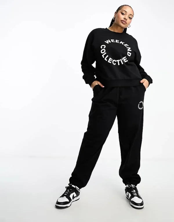 ASOS WEEKEND COLLECTIVE Weekend Collective Curve Co-ord Oversized Jogger With Logo In Black For Women