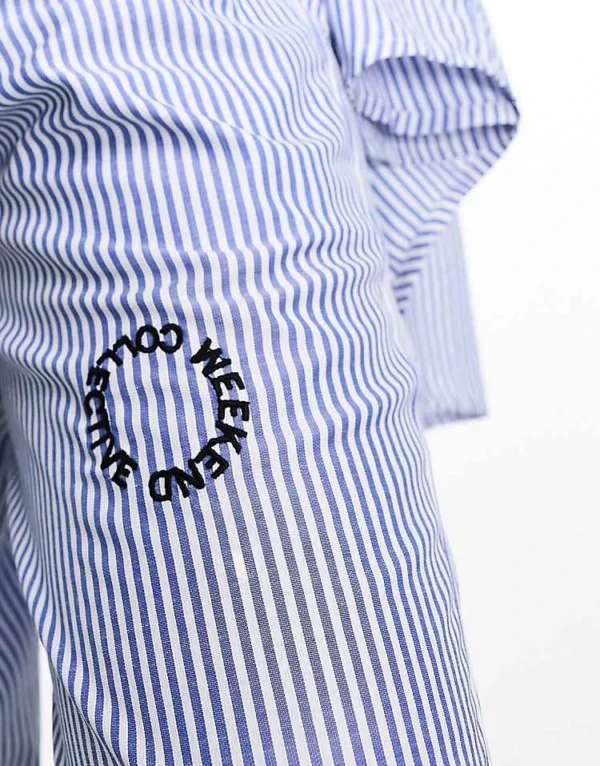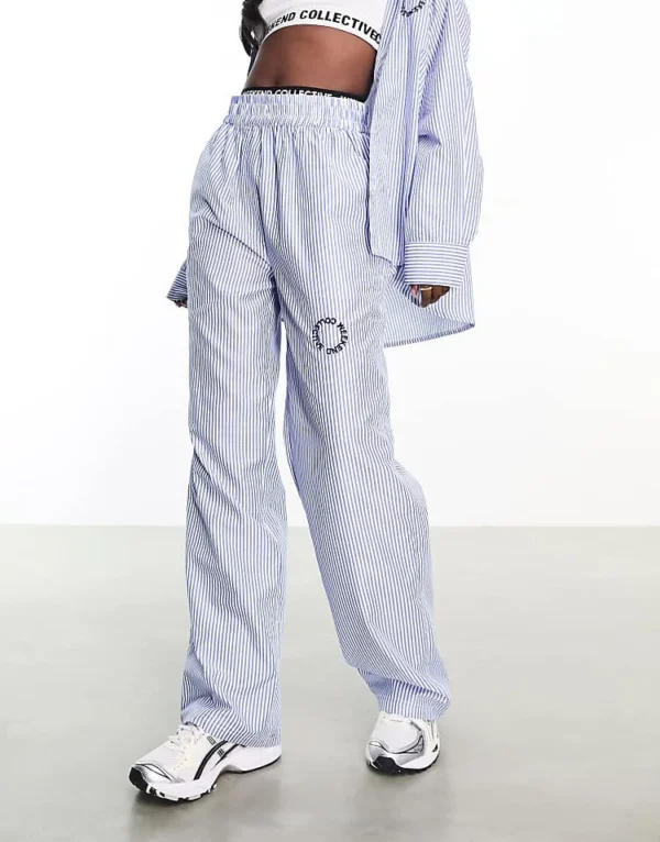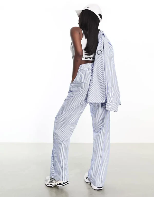 ASOS WEEKEND COLLECTIVE Weekend Collective Co-ord Wide Leg Striped Trouser In Blue And White For Women