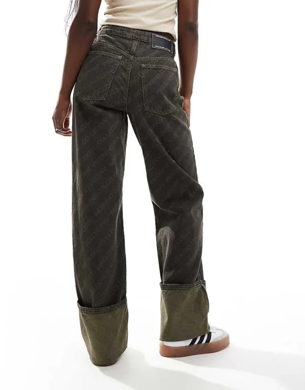 ASOS WEEKEND COLLECTIVE Weekend Collective Laser Print Turn Up Jean In Washed Brown For Women