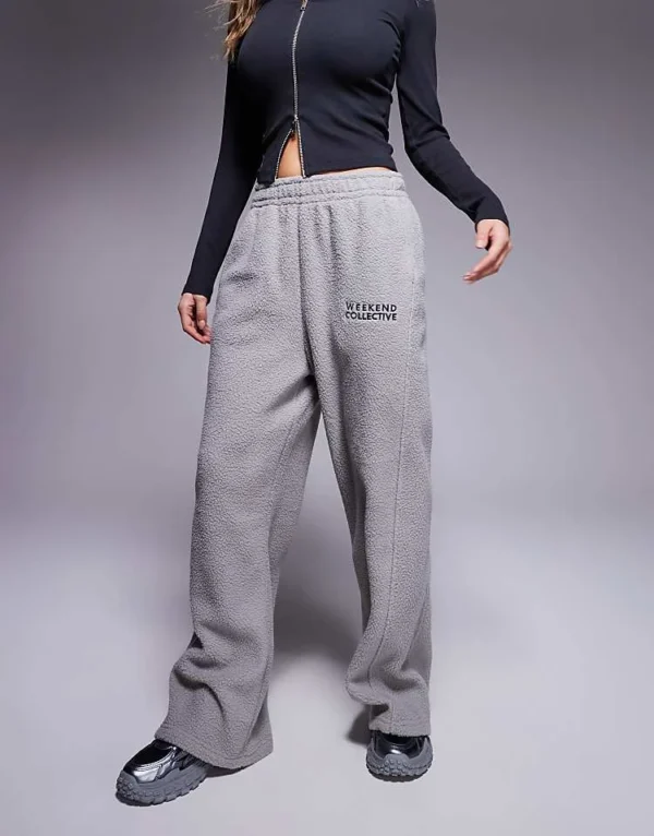 ASOS WEEKEND COLLECTIVE Weekend Collective Fleece Straight Leg Jogger In Grey For Women
