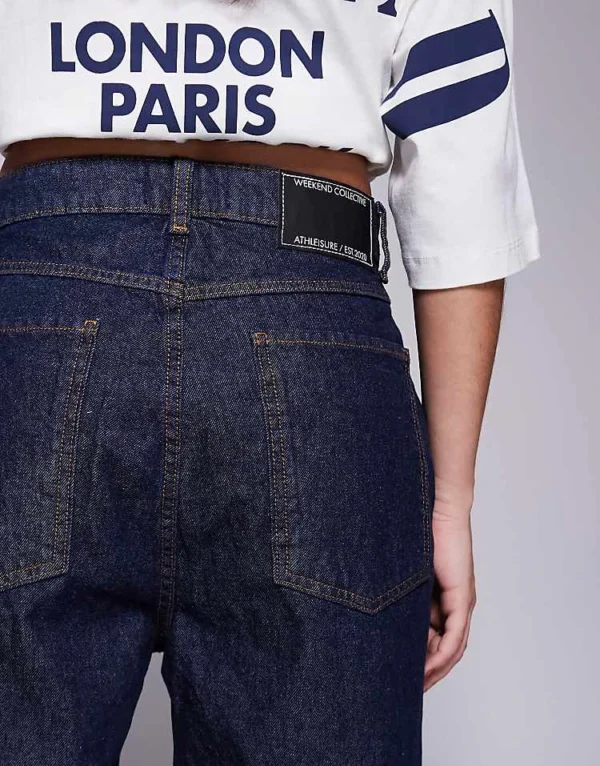ASOS WEEKEND COLLECTIVE Weekend Collective Mom Jean With Turn Up Detail In Indigo Wash For Women