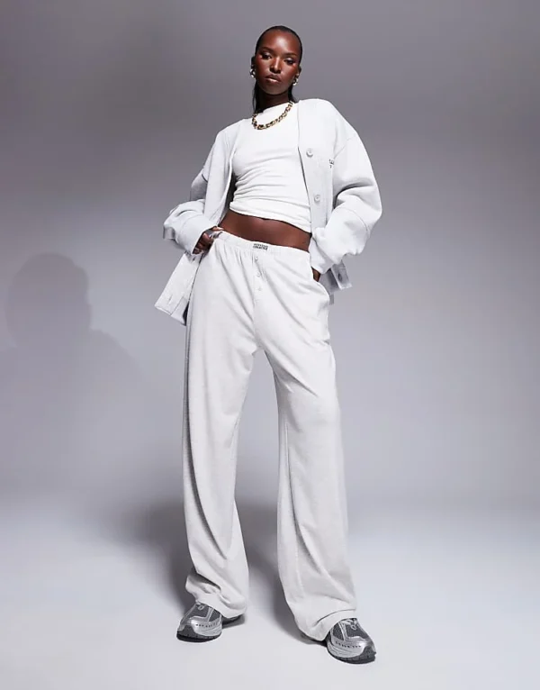 ASOS WEEKEND COLLECTIVE Weekend Collective Cotton Wide Leg Jersey Trouser In Grey Marl For Women