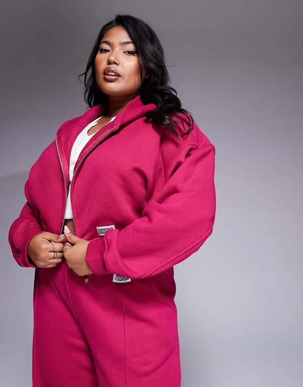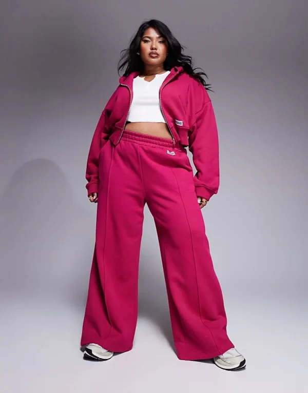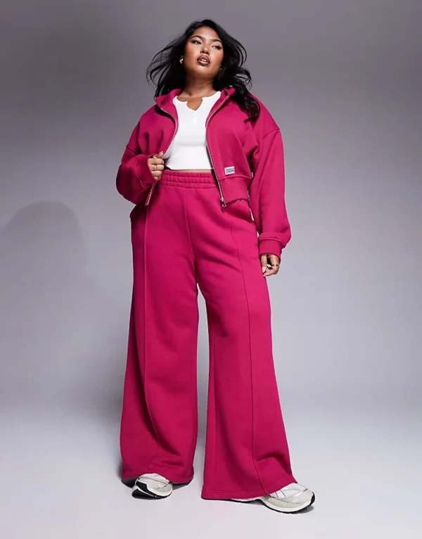 ASOS WEEKEND COLLECTIVE Weekend Collective Curve Co-ord Heavyweight Straight Leg Joggers And Cropped Jacket With Pintuck In Burgundy