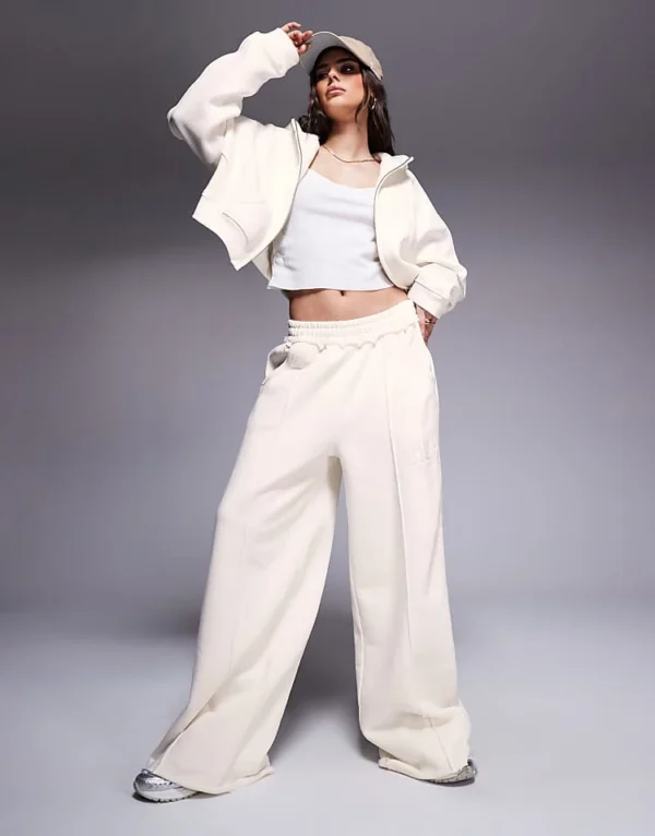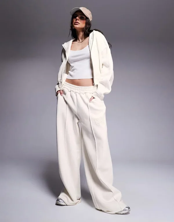 ASOS WEEKEND COLLECTIVE Weekend Collective Co-ord Zip Through Cropped Hoodie And Wide Leg Jogger In Cream