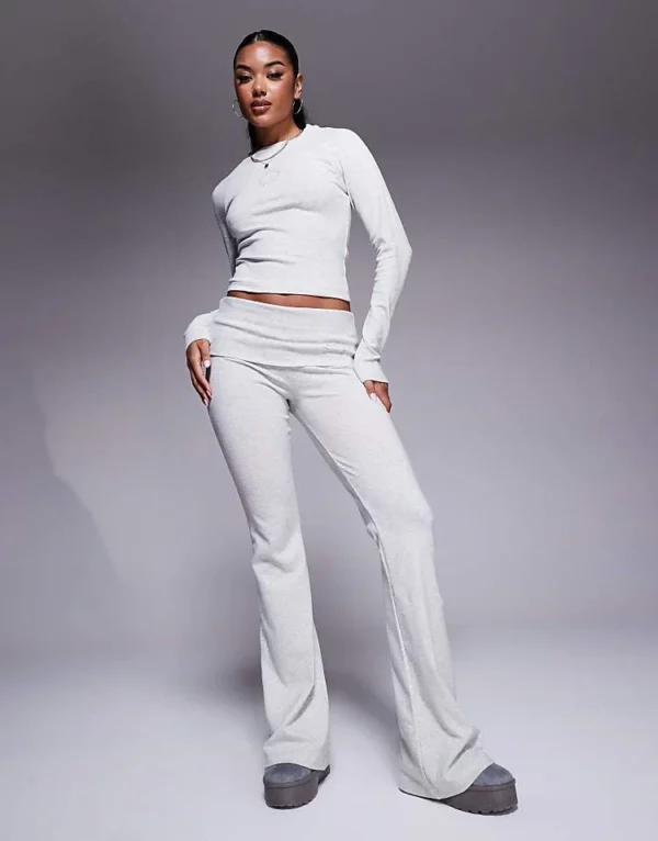 ASOS WEEKEND COLLECTIVE Weekend Collective Fold Over Waist Flare Trousers And Top In Grey Marl