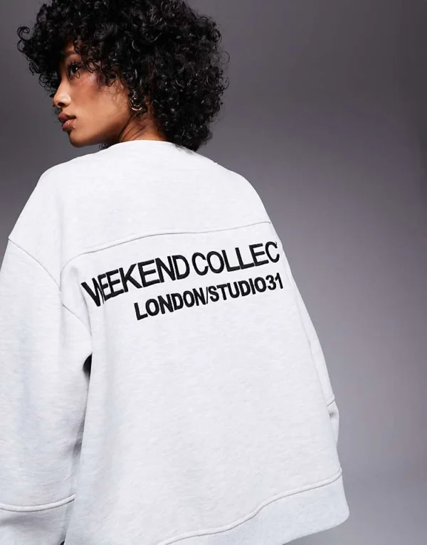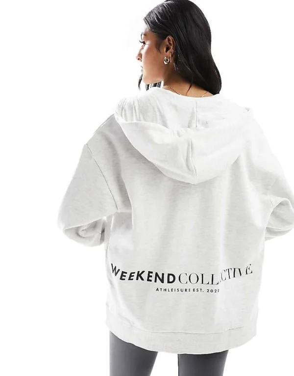 ASOS WEEKEND COLLECTIVE Weekend Collective Co-ord Oversized Zip Through Hoodie With Logo In Ice Marl For Women
