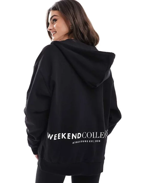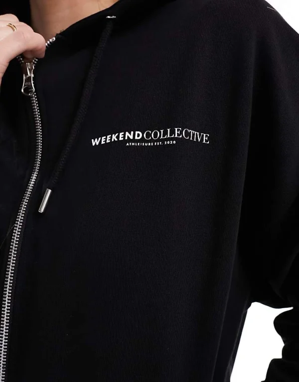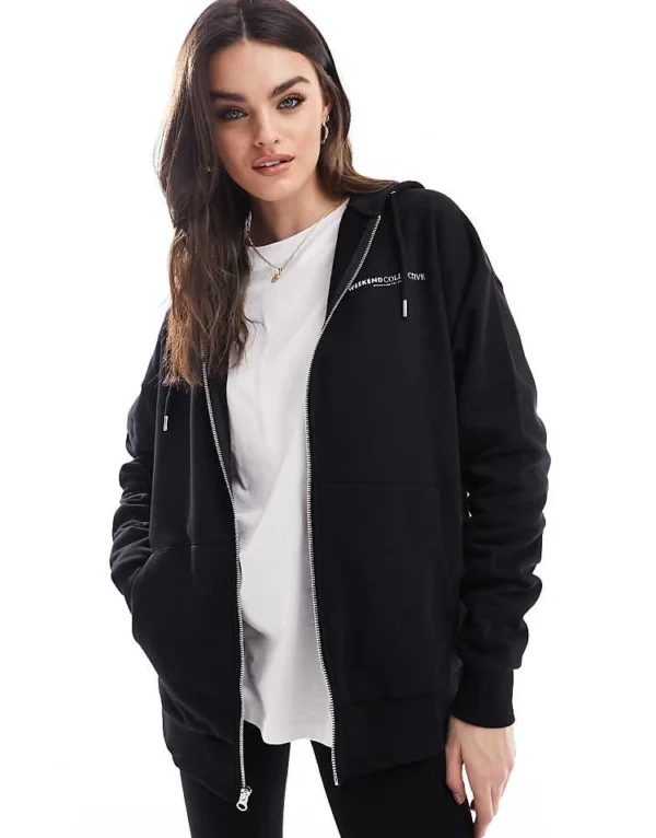 ASOS WEEKEND COLLECTIVE Weekend Collective Co-ord Oversized Zip Through Hoodie With Logo In Black For Women