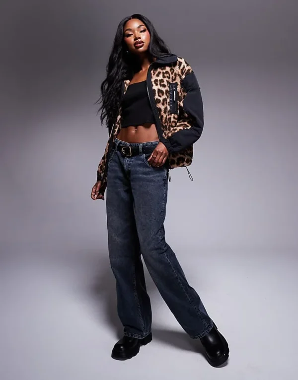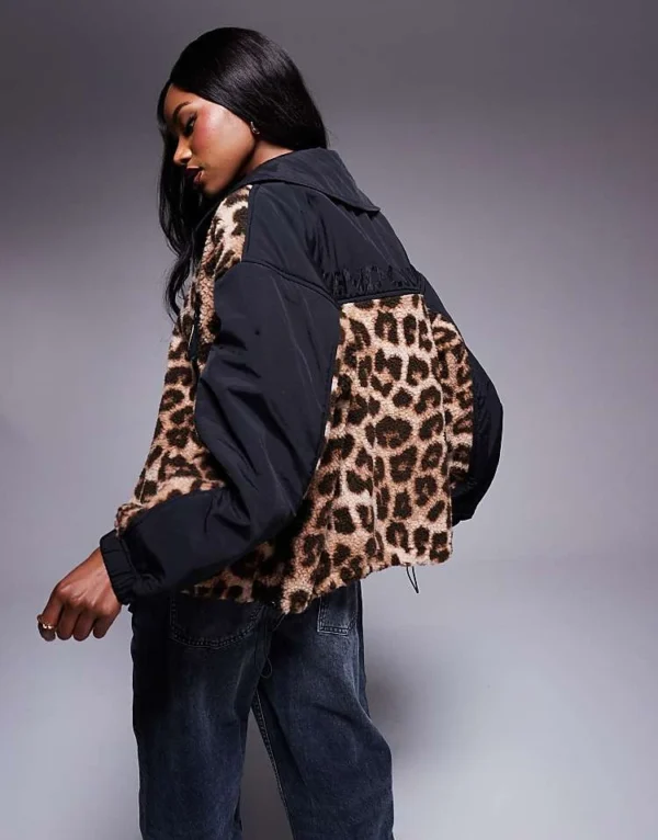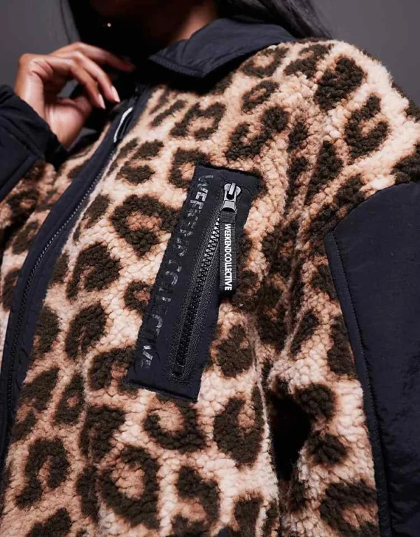 ASOS WEEKEND COLLECTIVE Weekend Collective Borg Nylon Zip Through In Black Leopard Mix For Women